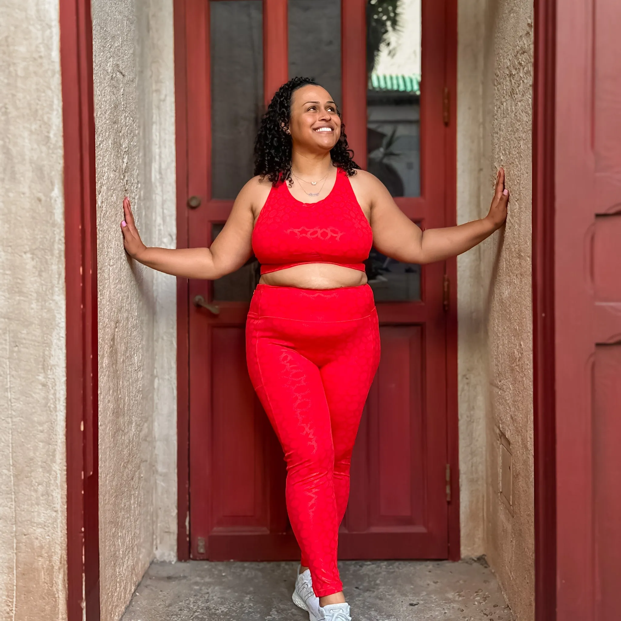 Empower your inner soaring, tumbling, and freewheeling princess in these custom-designed leggings! Our high-performance, sweat-absorbing fabric features a gorgeous mosaic tile foil print that sparkles in the sun just like a diamond in the rough. Pair with our matching sports bra and tank top for a workout, race day costume, casual cosplay, or parkbound outfit!