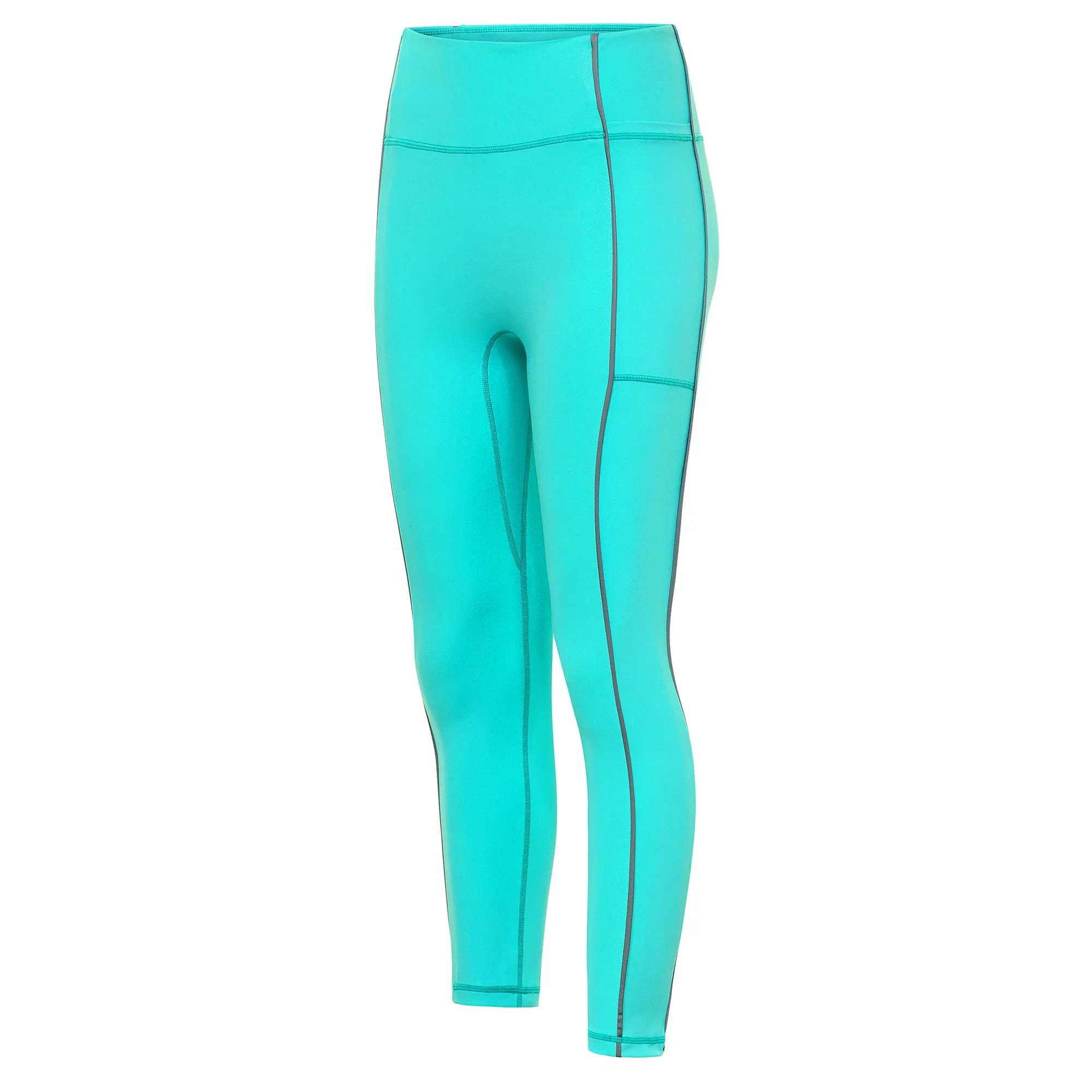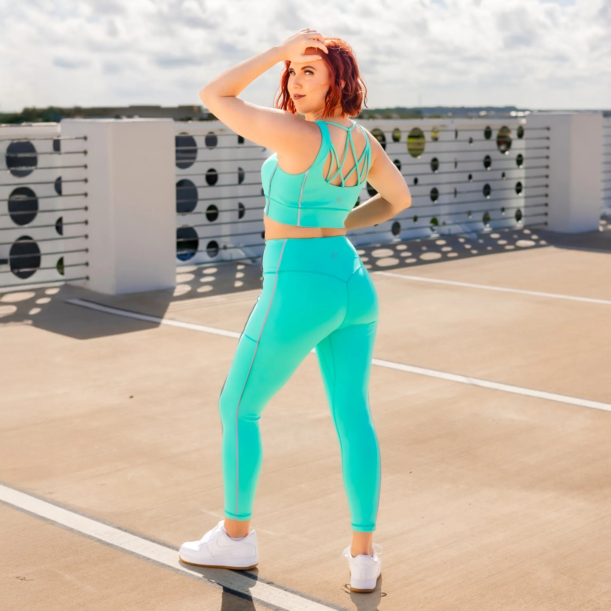 Own your power in the Electric Lagoon leggings, built to move and made to stand out! This bold turquoise blue hue delivers high-voltage energy, while reflective side trim adds a flash of visibility and edge. Pair it with the matching sports bra or mix and match with other colors our to create a look thats charged up and ready for anything.