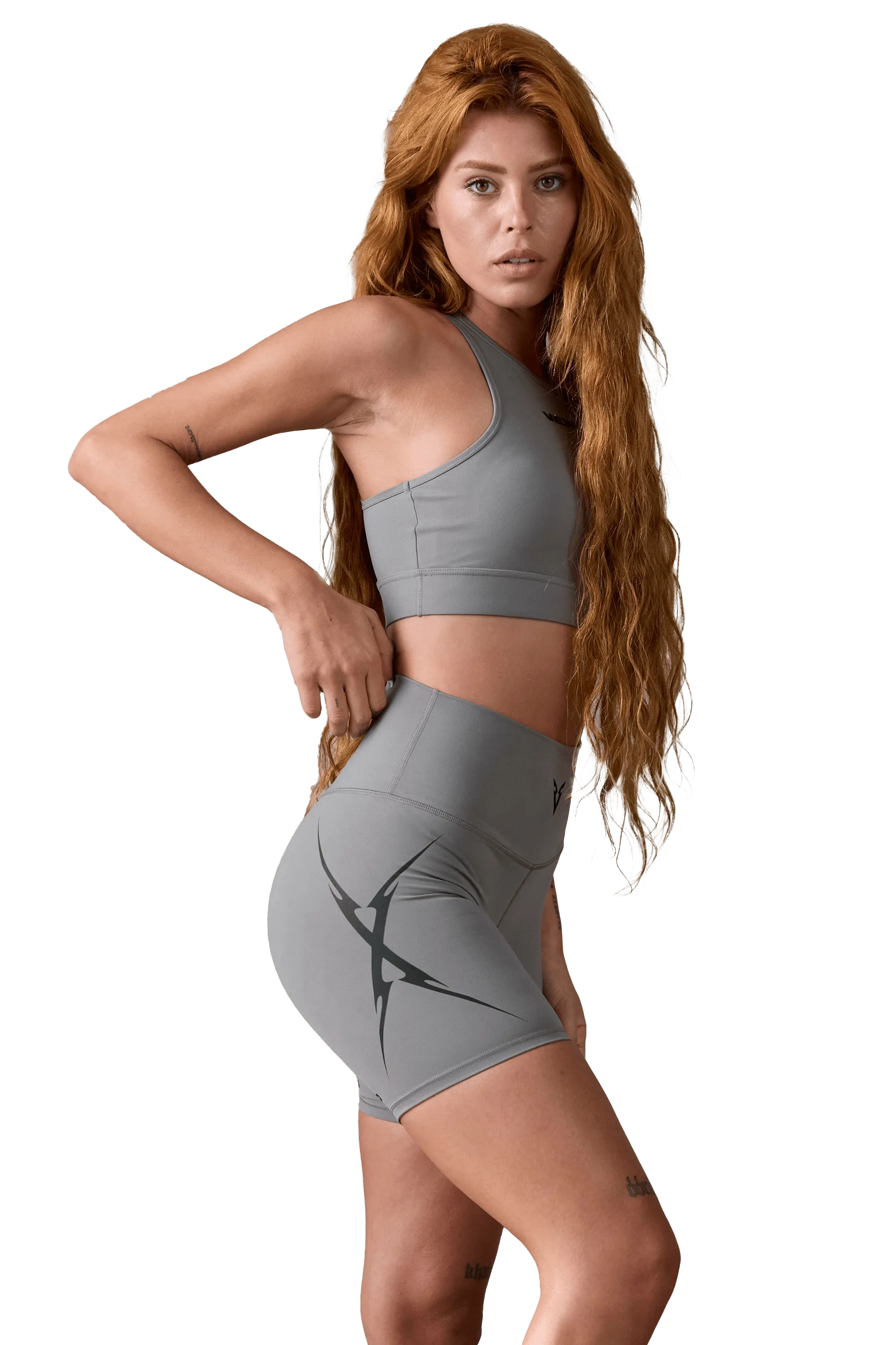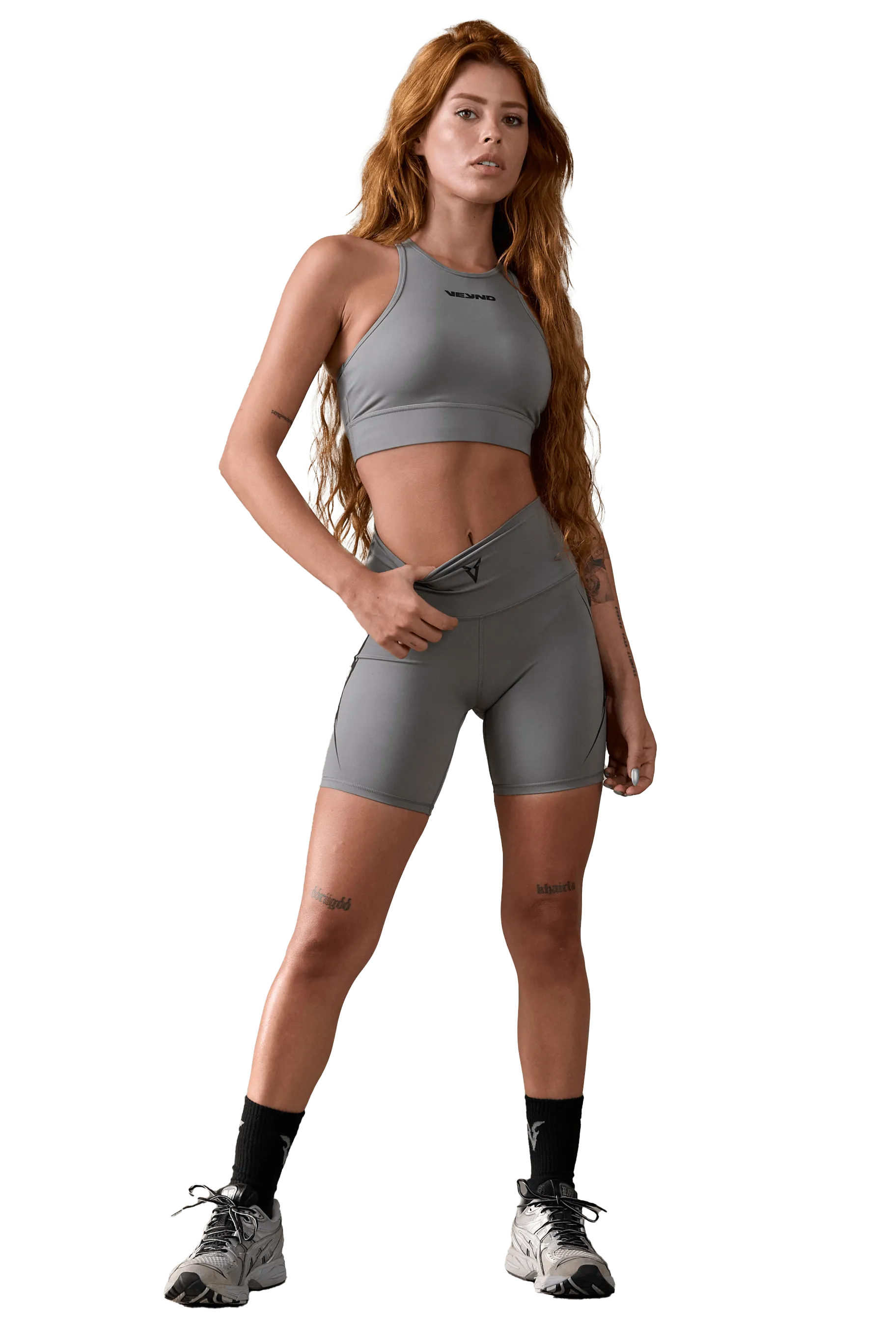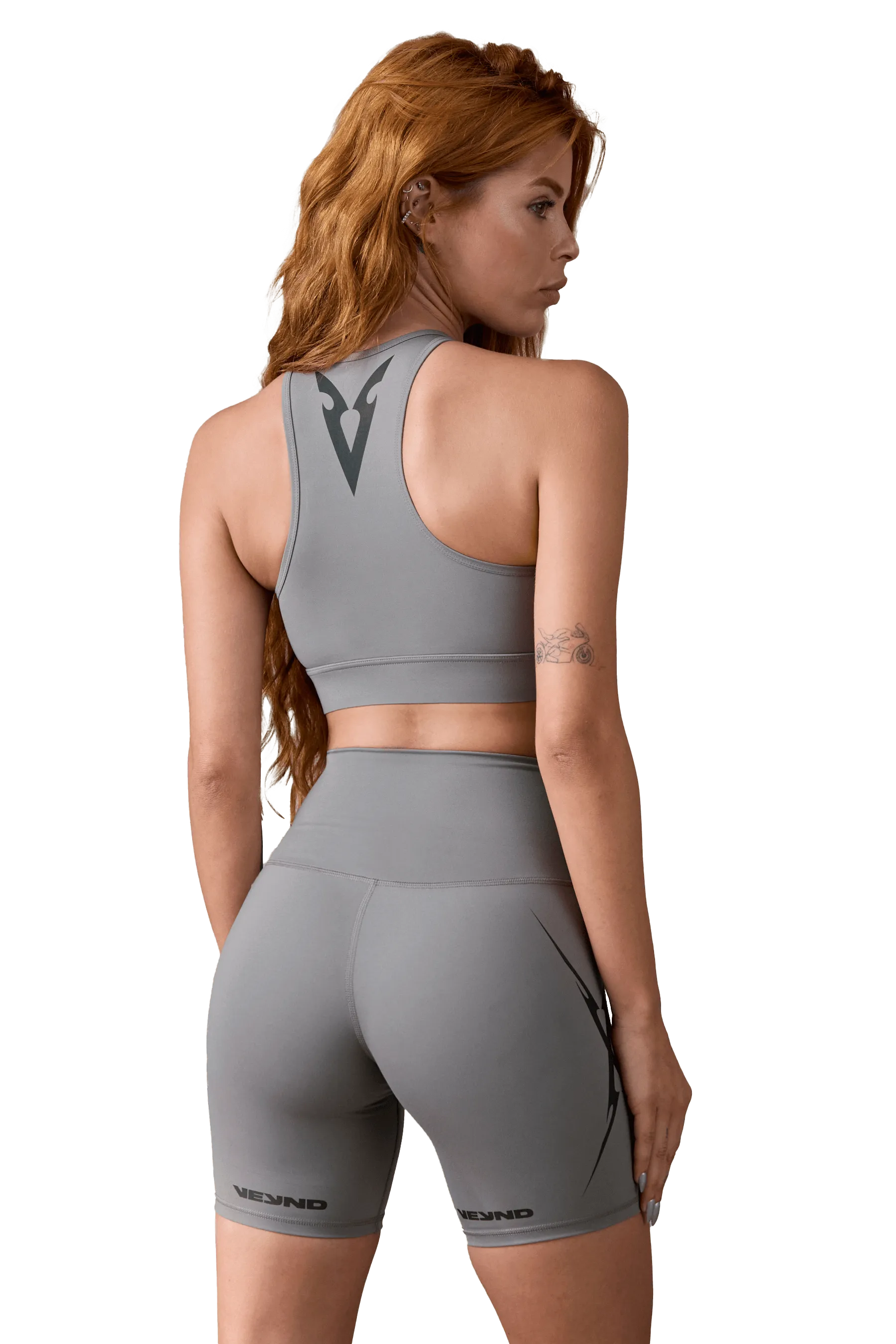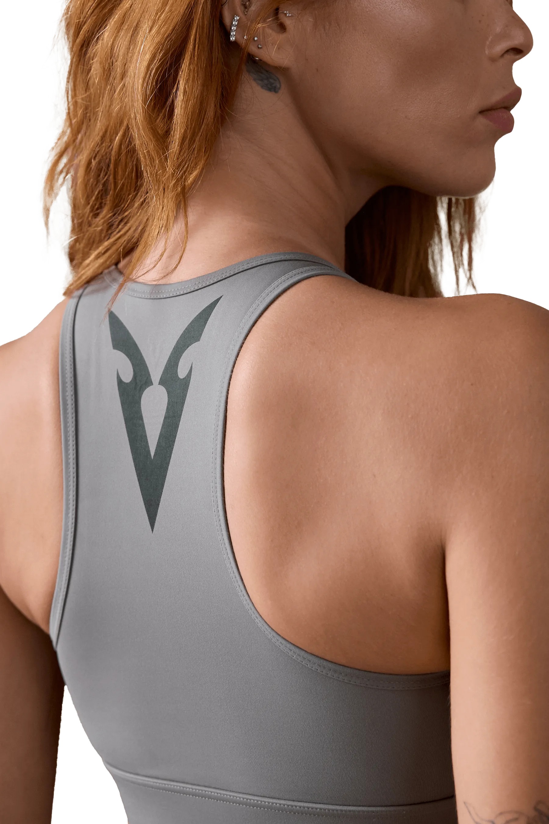 Powered by our soft peachy, sweat wicking V_SCULPT material, this light gray sports bra with a racer back gives the comfort and support you need. Let it move with you, no matter your workout. ^
